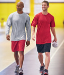 94% polyester/6% spandex • 4.1-oz. • moisture-management/antimicrobial performance fabric • double-needle hem with tack • paneled shoulder for maximum movement • left-sleeve heat-transfer logo • Sizes: S-4XL