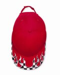 Checkered flames ignite the visor of this six-panel, mid-profile cap structured with buckram backing.