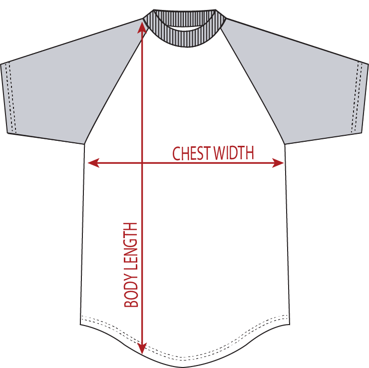 50% polyester/50% cotton jersey knit * Contrast color 1x1 rib-knit collar * Contrast color raglan sleeves * Double-needle hemmed sleeves * Serged fishtail bottom